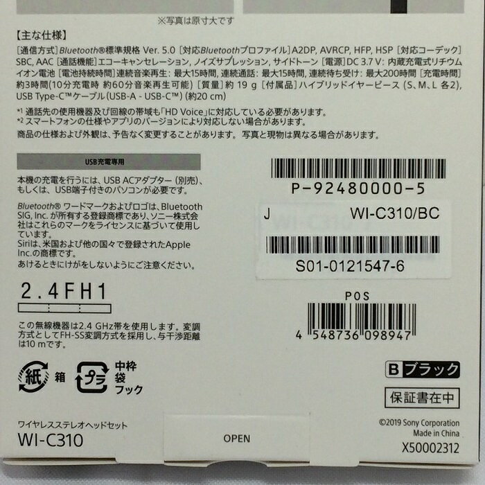 【商品詳細】 ◆メーカー名:SONY ◆型番:WI-C310 ★