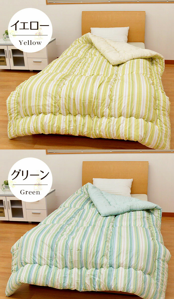 詳しいご利用方法はこちらまで [関連のワード]掛け布団 シングル 掛け布団 シングル 冬 掛け布団 シングル 日本製 掛け布団 冬 掛け布団 羊毛 掛け布団 ウール 掛け布団 羊毛布団 羊毛混布団 羊毛掛け布団 羊毛混掛け布団 清潔布団 ストライプ柄 おしゃれ イエロー グリーン保温性や吸湿発散性に優れたウールを使用したふかふかで暖かい掛け布団!備長炭入りでさらに快適性がUPしました! 抗菌防臭・防ダニ効果のある清潔な中わた、テイジンのマイティトップ®II ECOも使用している、安心の日本製の掛け布団です! 羊毛は弾力性があり、湿気を吸い、また湿気を逃がす機能が優れているので心地よい寝心地をサポートします。