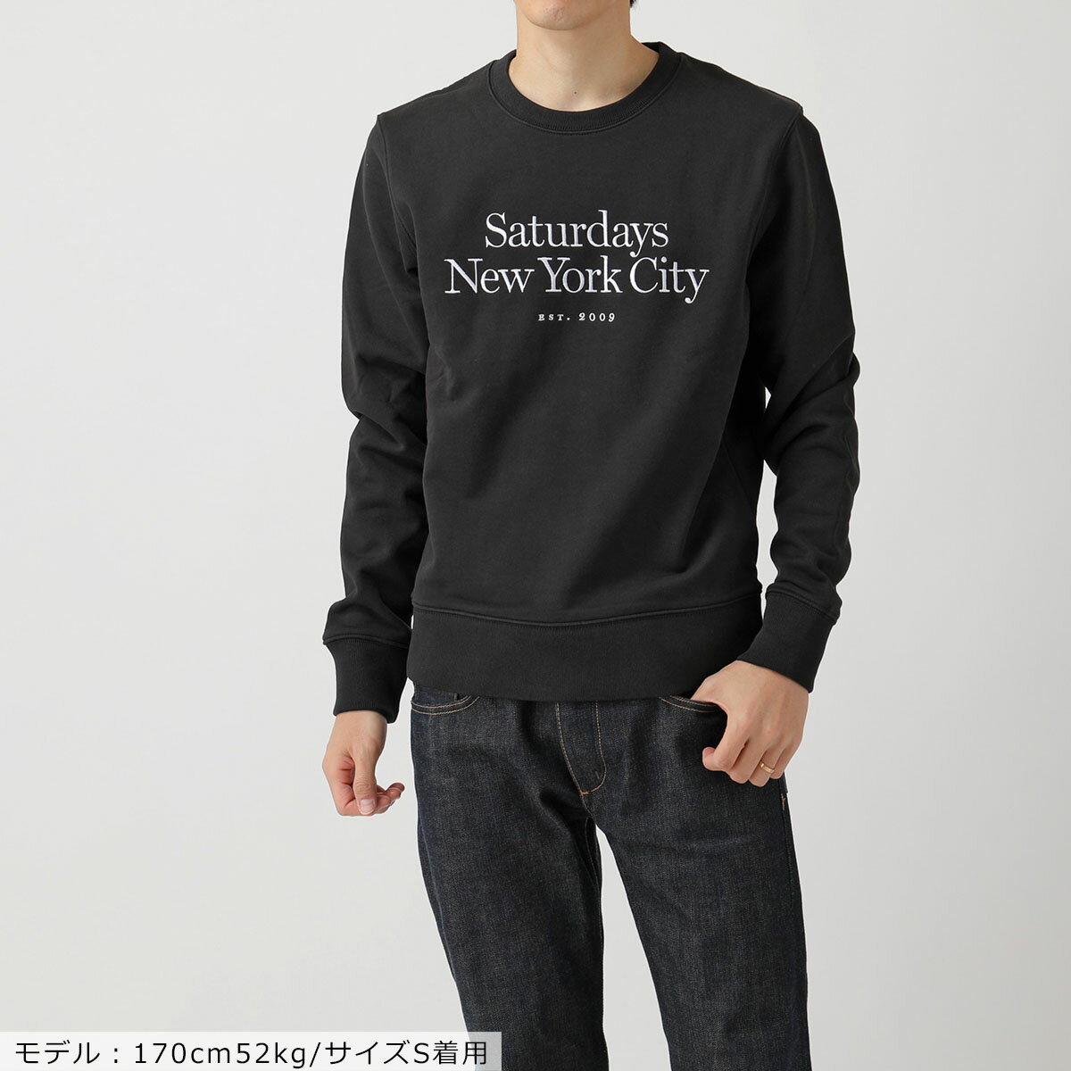 SATURDAYS NEW YORK CITY(サタデーズニューヨークシティ)の他商品一覧はこちら ITEM アイテム≫メンズ≫トップス≫スウェット・トレーナー MODEL M41928BW01 COLOR BLACK/ブラック SIZE(cm) 【S】肩44着丈61身幅54袖64 【M】肩45.5着丈64.5身幅56.5袖65.5 【L】肩47.5着丈68身幅59袖67 【XL】肩49着丈69.5身幅61.5袖68.5 ⇒サイズガイドはこちら ※サイズの若干の誤差はご了承ください。