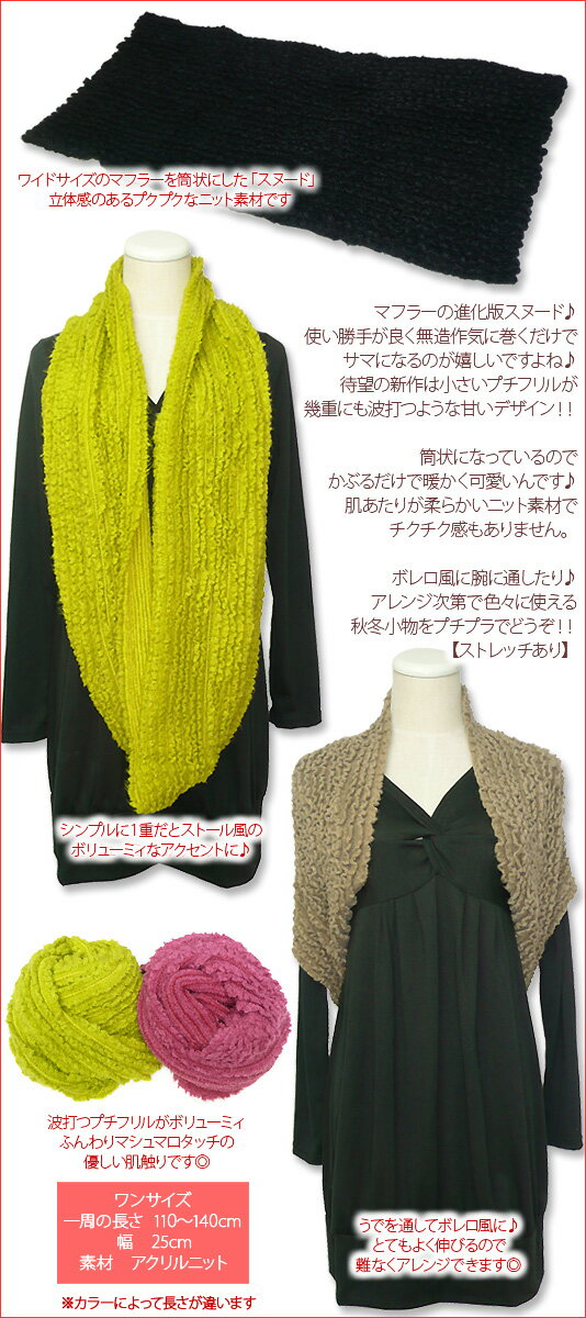 【マフラー・ストール・ネックウォーマー・ボレロ・カーディガン】 小さなプチフリルが愛らしいスヌードが登場しました♪