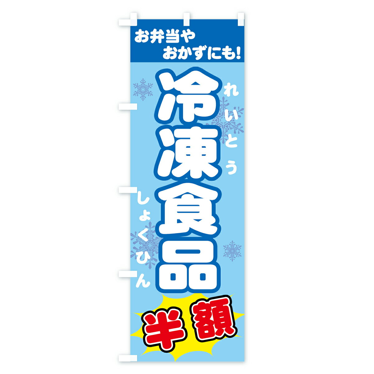 【3980送料無料】 のぼり旗 冷凍食品のぼり 半額 お弁当屋おかずにも れいとうしょくひん 加工食品内容・記載の文字(冷凍食品 半額 お弁当屋おかずにも れいとうしょくひん)印刷自社生産 フルカラーダイレクト印刷またはシルク印刷デザイン【A】【B】【C】からお選びください。